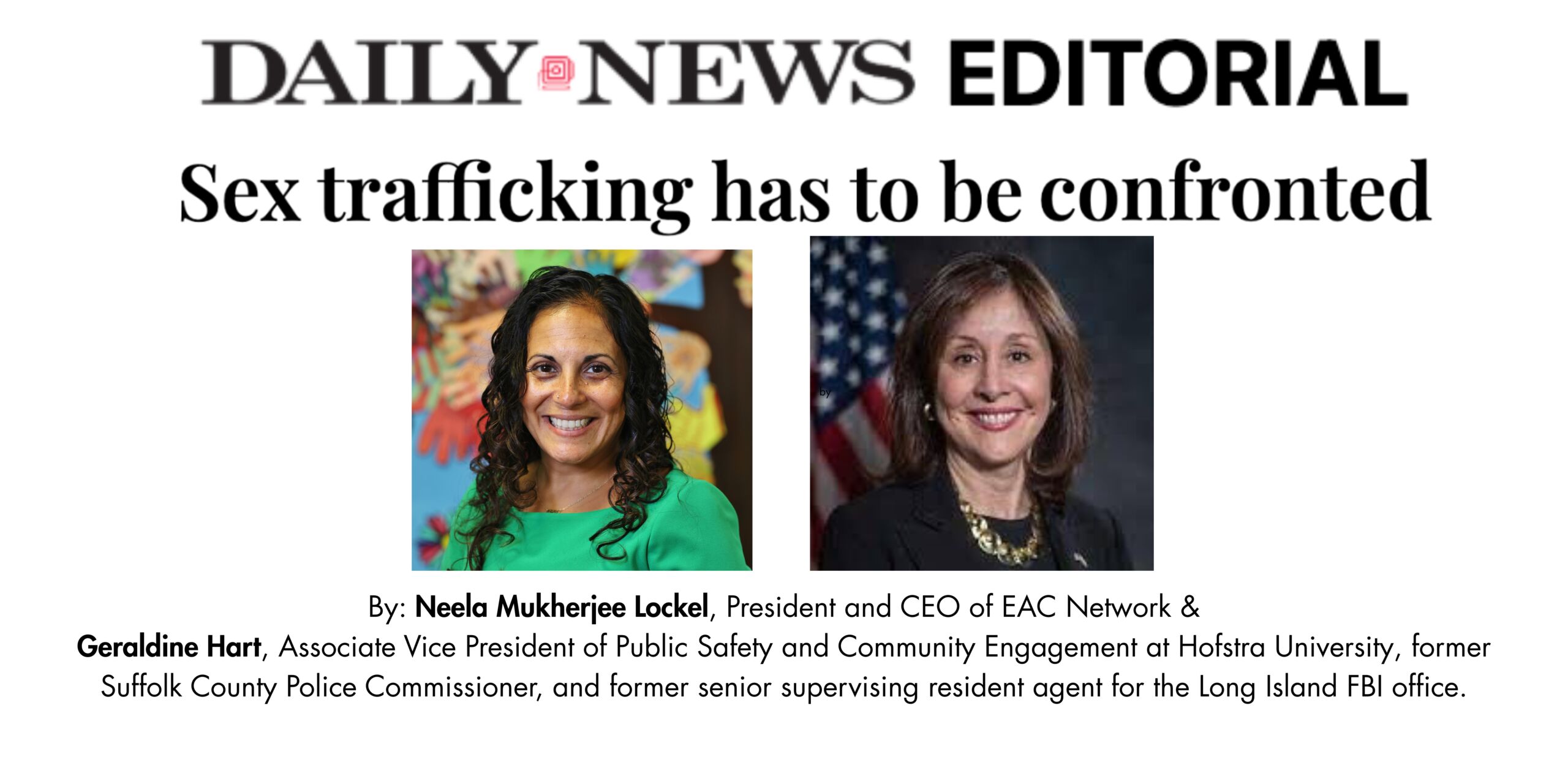 We’ve seen this crisis from both sides – law enforcement and direct services. Law enforcement agencies have investigated and dismantled trafficking operations across Long Island. Our experiences with the FBI, the Suffolk County Police Department, and within EAC Network revealed a chilling truth: while drugs and guns can be sold only once, human beings can be sold again and again.